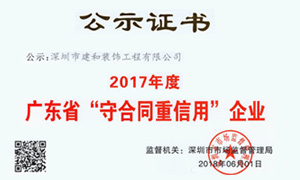 近日,建和裝飾榮獲由廣東省工商行政管理局頒發(fā)的“廣東省守合同重信用企業(yè)”(2017),據(jù)了解,“廣東省守合同重信用企業(yè)”評(píng)選是為了鼓勵(lì)企業(yè)加強(qiáng)合同和信用管理,促進(jìn)當(dāng)?shù)仄髽I(yè)信用體系建設(shè),活動(dòng)在廣東省全面開展以來,得到了社會(huì)各界和廣大企業(yè)的充分認(rèn)可 ...